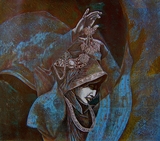 1990年 《蓝风中飞走的鸟》入选“首届全国青年版画大展”,被上海美术馆收藏